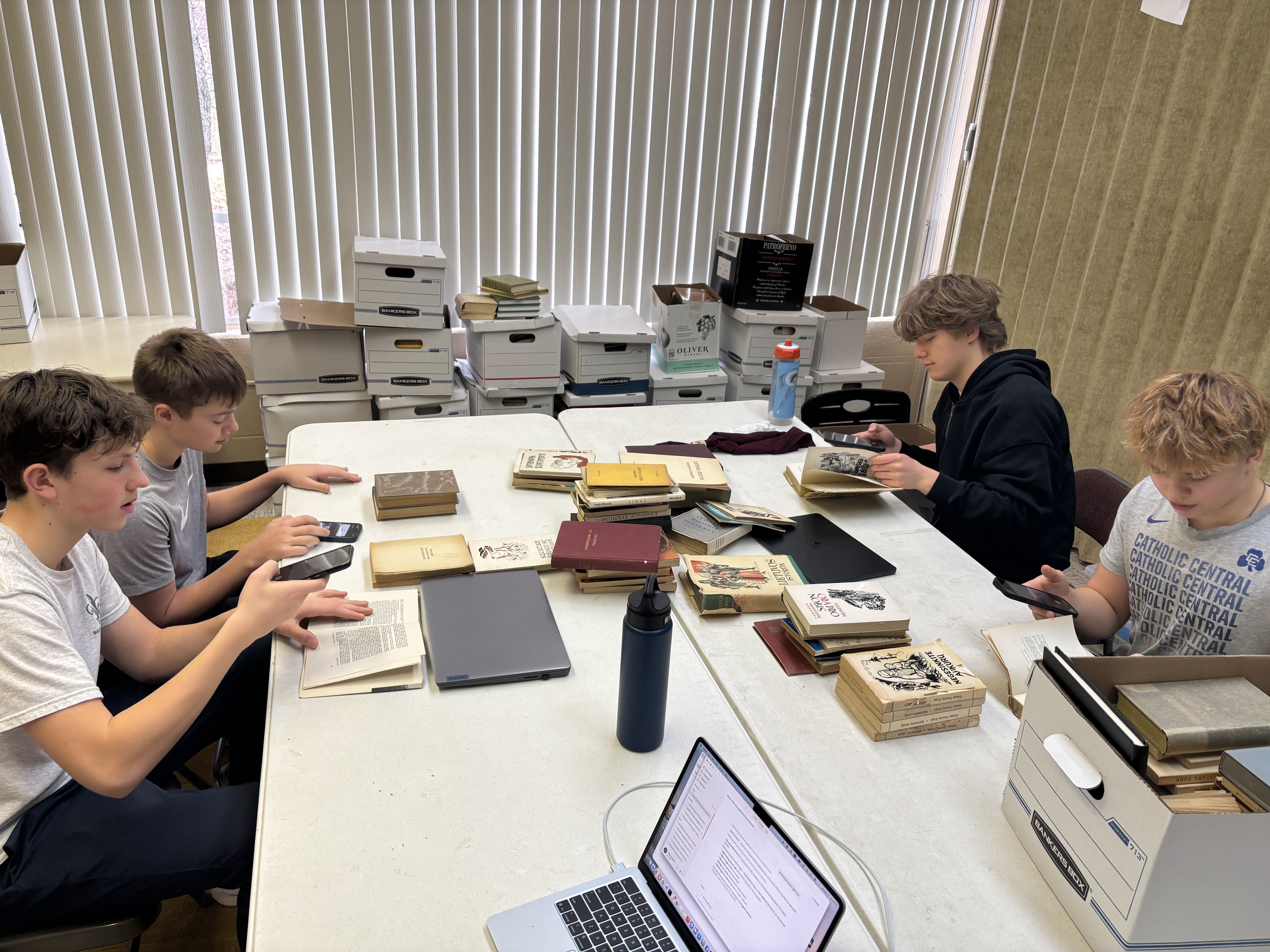 The interns operate within a competitive structure: who located the oldest volume, who identified the most unusual title, who surfaced a publication from a press no one had previously documented. Discovery itself serves as the measure of engagement, and the competitive framework is deliberately designed to reward depth of observation over speed of processing.